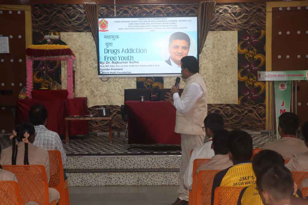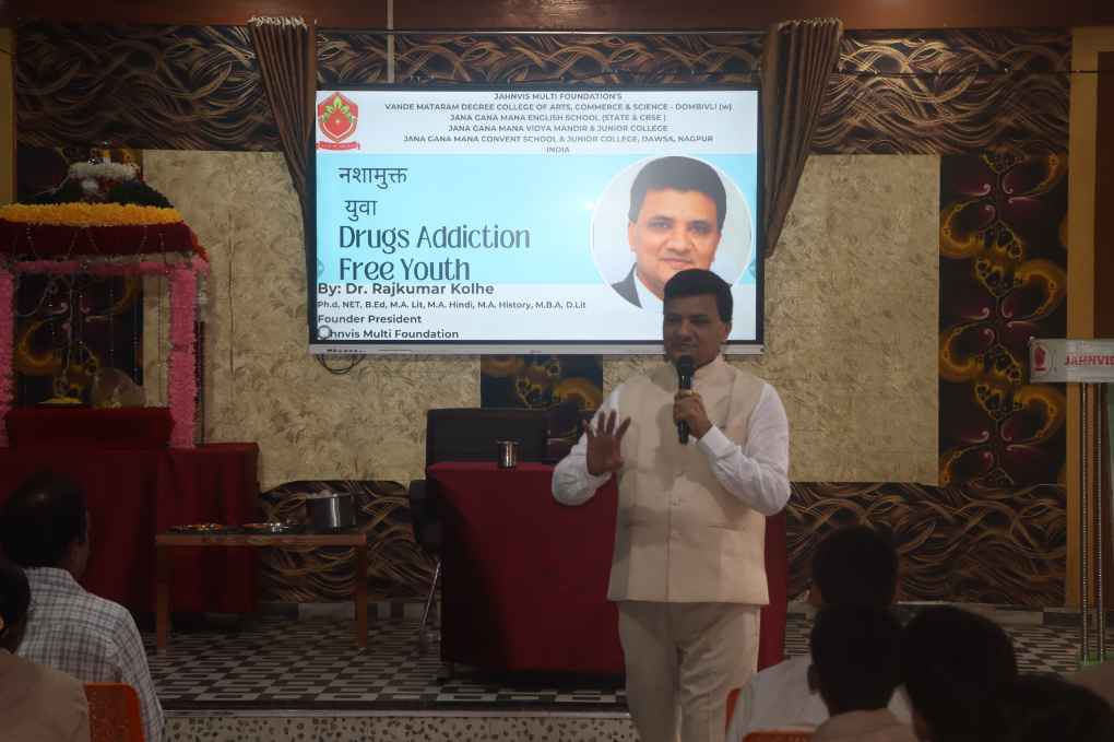 Jan Gan Man English Secondary School, in its unwavering commitment to fostering socially responsible and aware citizens, proudly organized a seminar on the "Nasha Mukt Bharat" (Drug Addiction Free India) campaign. The event was conducted under the esteemed guidance of Dr. Rajkumar Kolhe, President of Jahnvis Multi Foundation, and was attended by students, teachers, and school management. The primary objective of the seminar was to raise awareness about the grave dangers of substance abuse and empower the youth to become proactive agents of change in building a drug-free society.